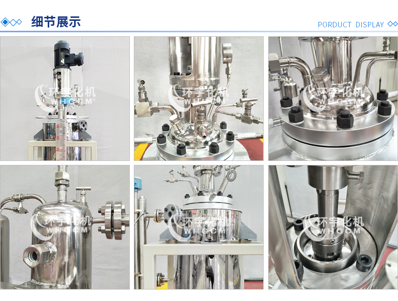 常規釜蓋開口 氣相口配針形閥,液相口配針形閥及釜內插底管,固體加料口配絲堵,測控溫口配鉑電阻,壓力表安全爆破口配壓力表及安全防爆裝置,釜內冷卻盤管進、出口配水咀