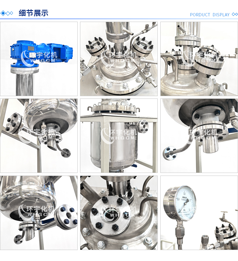 其他附件 如果用戶在釜蓋、釜體開口、內(nèi)部結(jié)構(gòu)、壓力高低、攪拌槳葉、及增加其他輔助裝置(如冷凝回流裝置、冷凝器、恒壓加料罐、接收裝置)等有特殊要求,可完全按用戶的要求加工制造