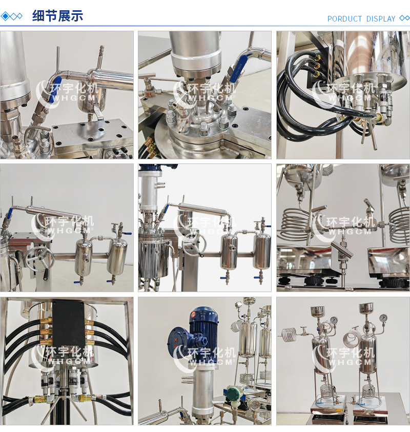 其他附件 如果用戶在釜蓋、釜體開口、內(nèi)部結(jié)構(gòu)、壓力高低、攪拌槳葉、及增加其他輔助裝置(如冷凝回流裝置、冷凝器、恒壓加料罐、接收裝置)等有特殊要求,可完全按用戶的要求加工制造