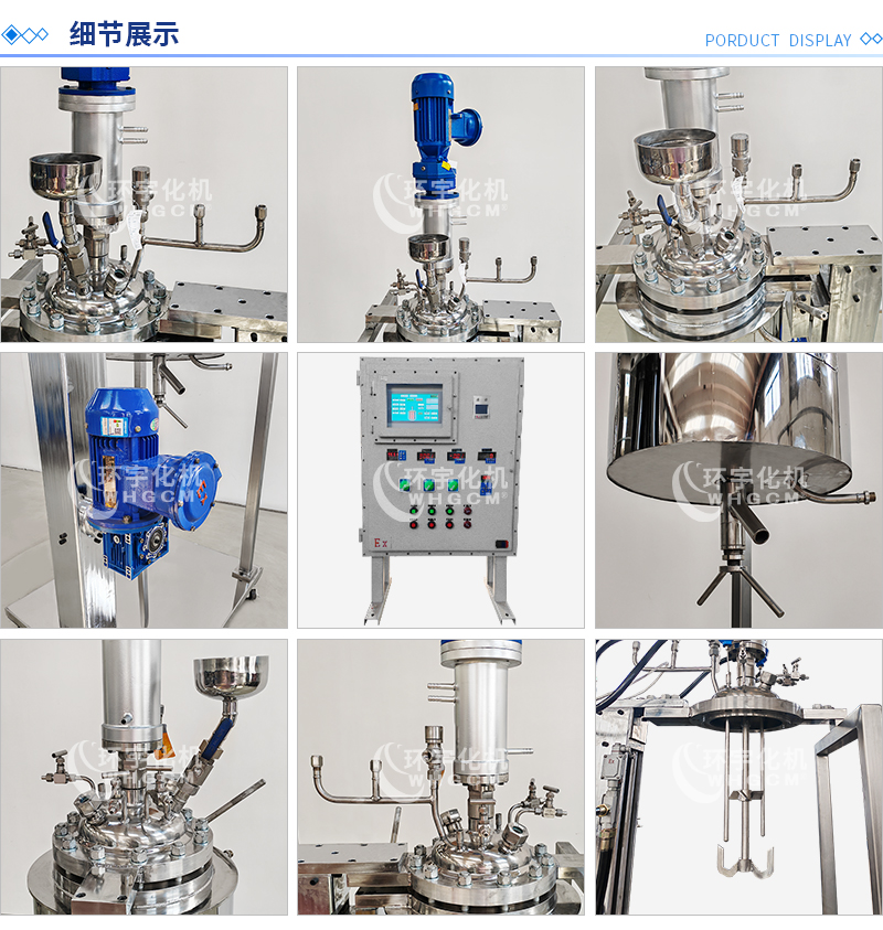 常規釜蓋開口 氣相口配針形閥,液相口配針形閥及釜內插底管,固體加料口配絲堵,測控溫口配鉑電阻,壓力表安全爆破口配壓力表及安全防爆裝置,釜內冷卻盤管進、出口配水咀