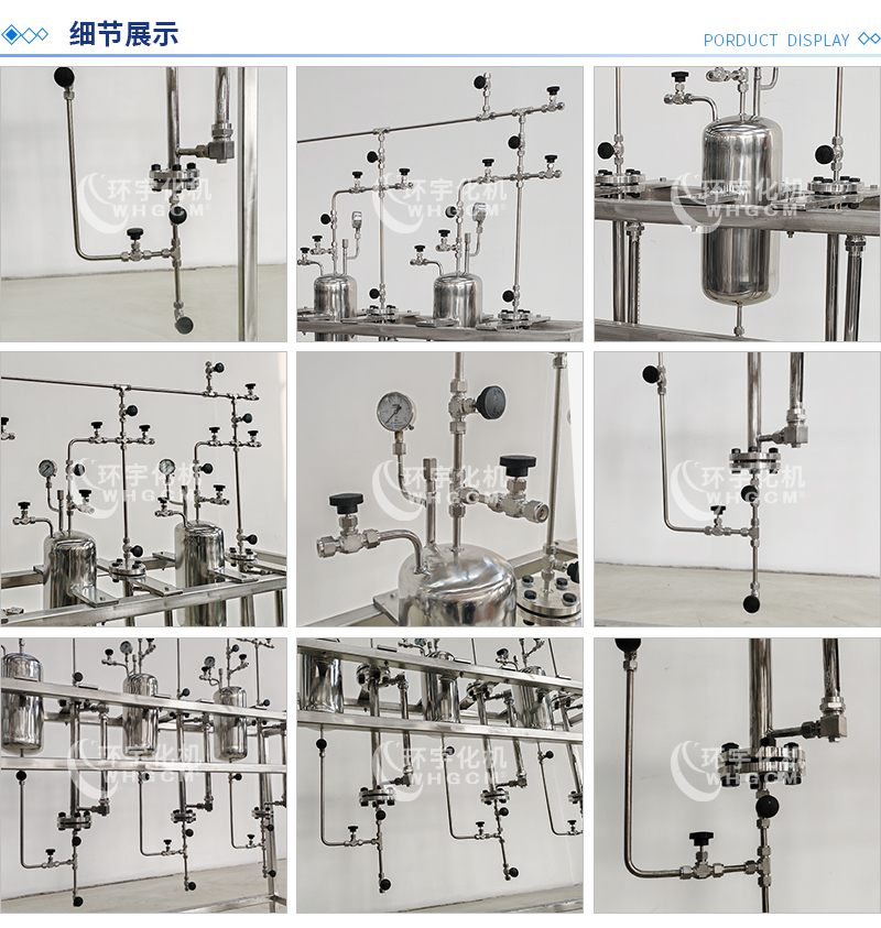 常規釜蓋開口 氣相口配針形閥,液相口配針形閥及釜內插底管,固體加料口配絲堵,測控溫口配鉑電阻,壓力表安全爆破口配壓力表及安全防爆裝置,釜內冷卻盤管進、出口配水咀