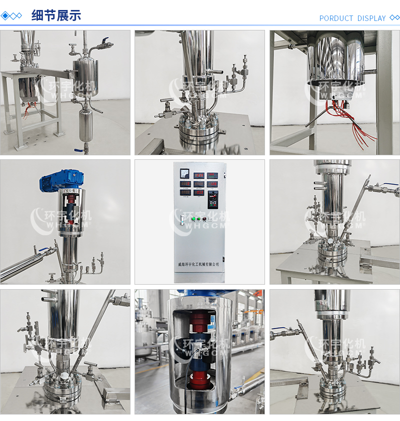 常規釜蓋開口 氣相口配針形閥,液相口配針形閥及釜內插底管,固體加料口配絲堵,測控溫口配鉑電阻,壓力表安全爆破口配壓力表及安全防爆裝置,釜內冷卻盤管進、出口配水咀