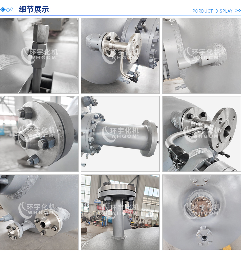 其他附件 如果用戶在釜蓋、釜體開口、內(nèi)部結(jié)構(gòu)、壓力高低、攪拌槳葉、及增加其他輔助裝置(如冷凝回流裝置、冷凝器、恒壓加料罐、接收裝置)等有特殊要求,可完全按用戶的要求加工制造