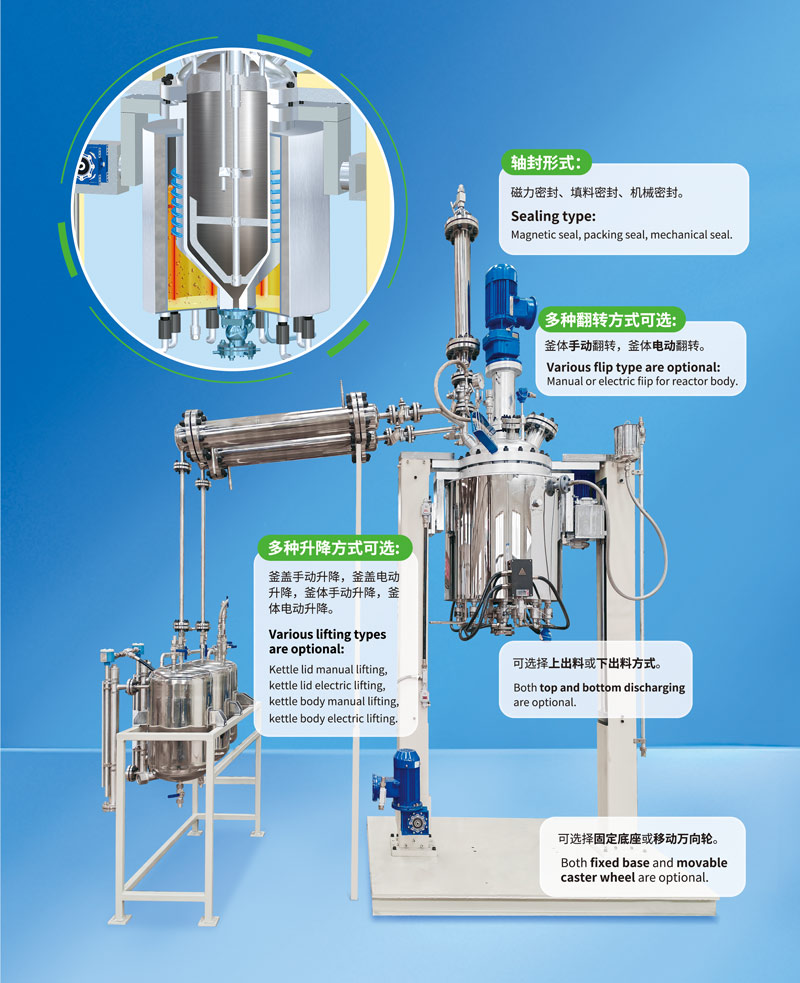| 加熱方式 | 遠紅外電線加熱、油浴電加熱、夾套循環導熱油/蒸汽/熔鹽加熱 | ||||